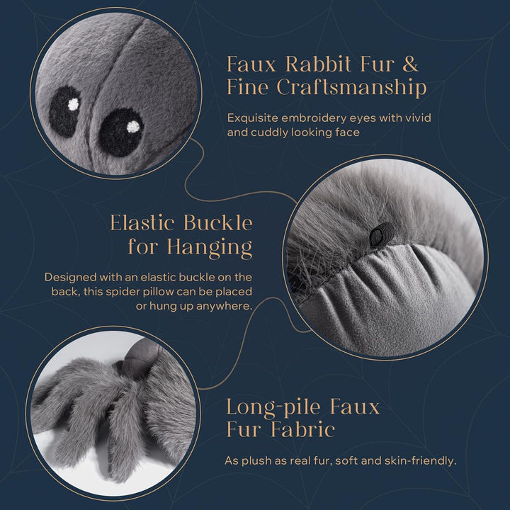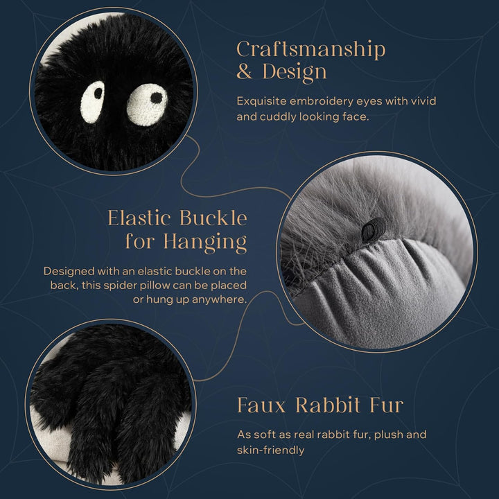 - 【Soft Sipder Pillow Plush】Exquisitely made of high-grade faux alpaca fleece and rabbit fur with a shaggy look; excellent workmanship is embodied in every stitching; details are amazing
