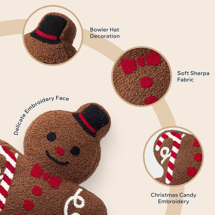 - 【Gingerbread Christmas Pillows】Whoa! The new gingerbread man cushion with a gentlemanly look is here! The dainty Mr. gingerbread Christmas pillow with hat, elegant candy cane, and tone of detailed embroidery is snuggly and playful adding a unique Christmas vibe to pop up in no time