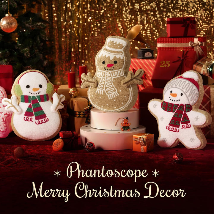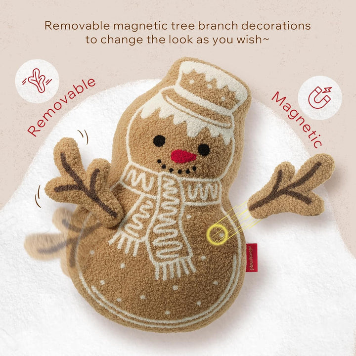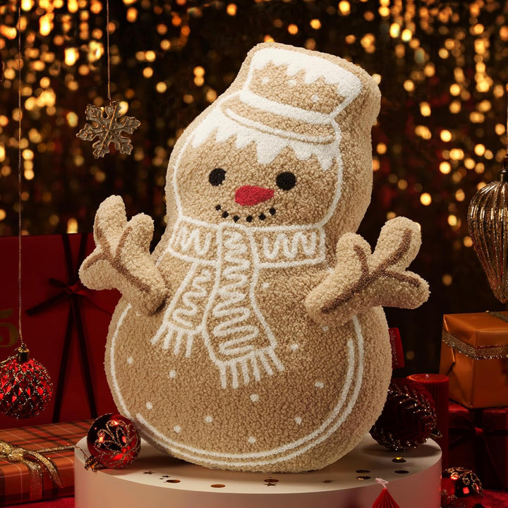 - 【Frosty Gingerbread Snowman Pillows】Wow! Meet our gingerbread man in a frosting disguise! This jolly Christmas snowman gingerbread shaped pillow wears a classic top hat and a striped scarf, complete with a cheerful red nose and a friendly smile. With his DIY branch arms, soft, fluffy body, and whimsical winter charm, he’s here to sprinkle your home with frosty fun and festive warmth—the coolest addition to your Christmas decor!