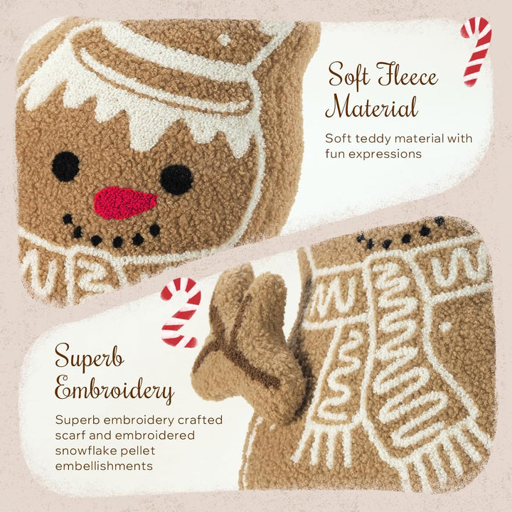 - 【Soft & Adorable Teddy Sherpa】Phantoscope takes soft teddy sherpa and creates a fun and exquisite snowman pillow for Christmas. What you receive is a deliciously fluffy gingerbread.