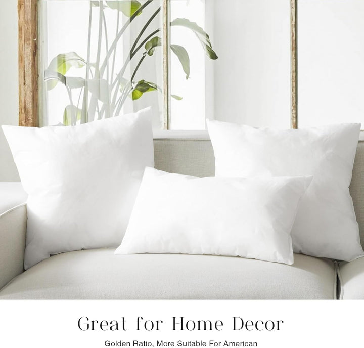 - High Filling Capacity - Our couch pillow inserts contain 10% more filling than most pillows on the market, and they are also a half-inch larger. We promise that every throw pillow insert is filled to at least 90%, ensuring that all corners are perfectly fitted.